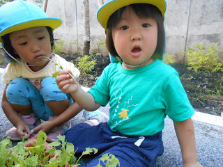 栄養士さんと園庭で育てている野菜の成長を見に行くと…