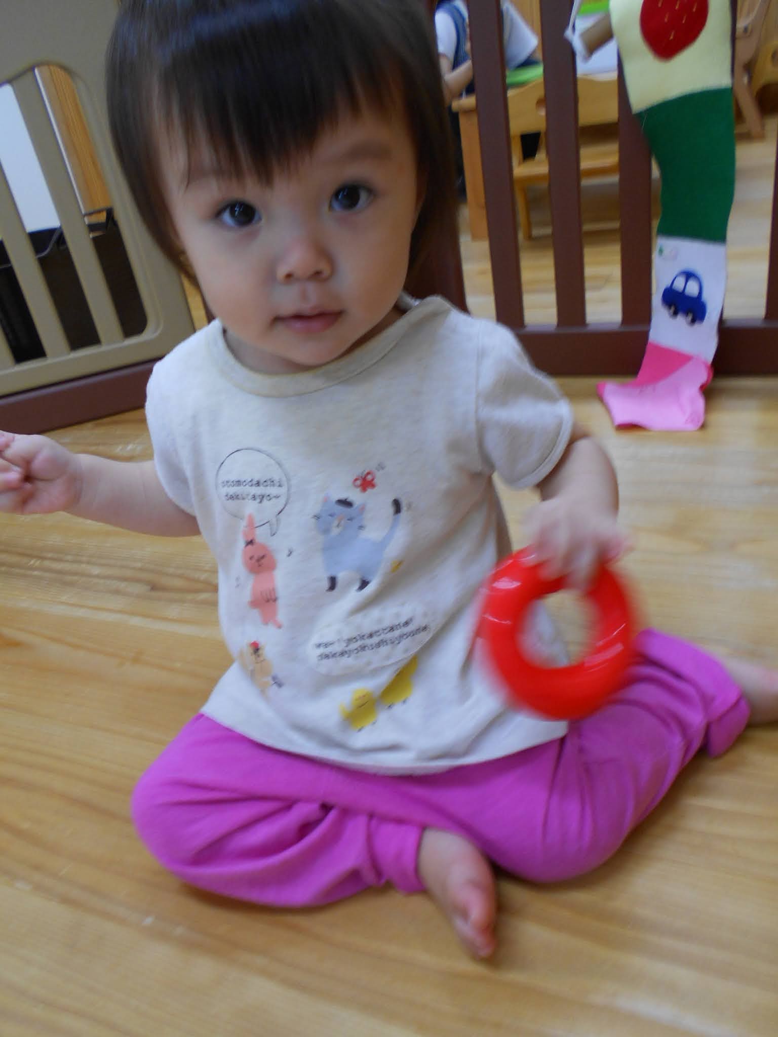 保育士に援助してもらいながらも