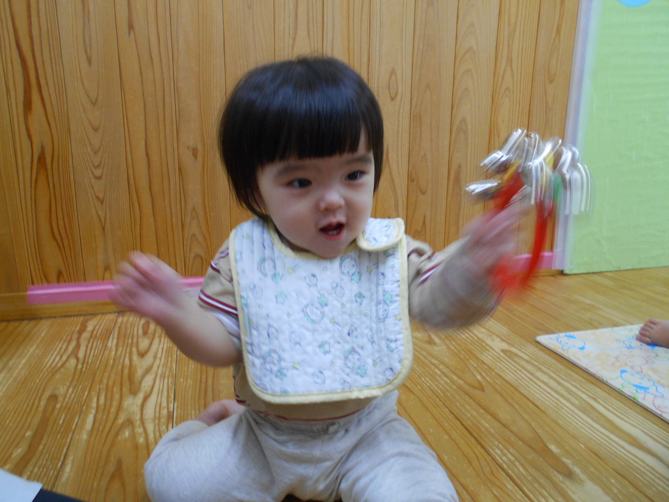 保育者の真似をしてお友達に絵本を読んであげたり、 手遊びをする姿も見られます。 |